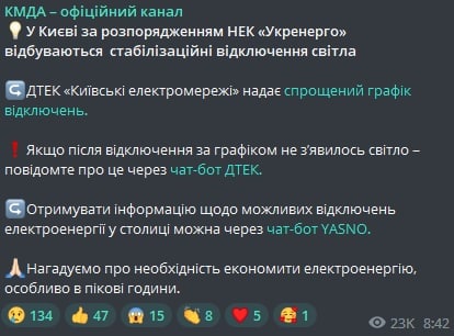ДТЭК "Киевские электросети" опубликовал упрощенный график отключений. Ознакомиться с ним можно здесь.