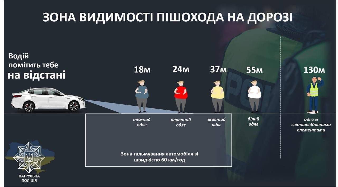 Власти регионов Украины призывают пешеходов носить на одежде светоотражающие элементы, чтобы их можно было различать водителям во время темного времени суток на фоне отключений уличного освещения.