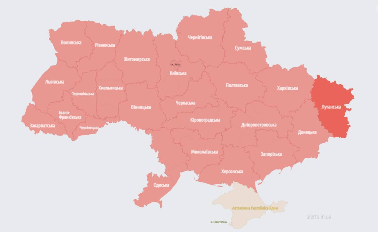 17.48 Воздушная тревога уже по всей Украине кроме Крыма.