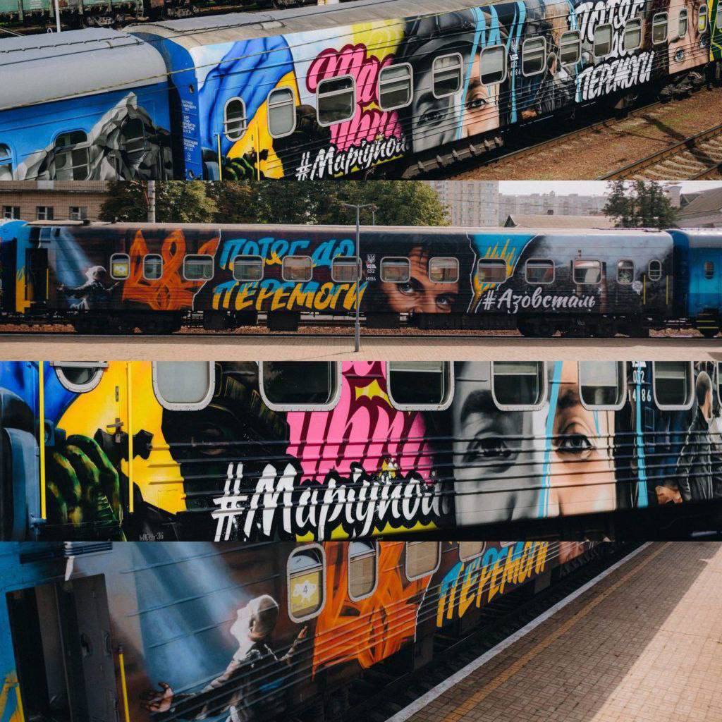 «Поезд к победе» в течение двух месяцев уже путешествовал по всем регионам Украины от Ужгорода до Харькова и от Киева до Одессы, а также стал местом специального брифинга госсекретаря США Энтони Блинкена. Каждый вагон расписан украинскими художниками и посвящён одному из временно оккупированных регионов Украины», - сообщает «Укрзализныця».