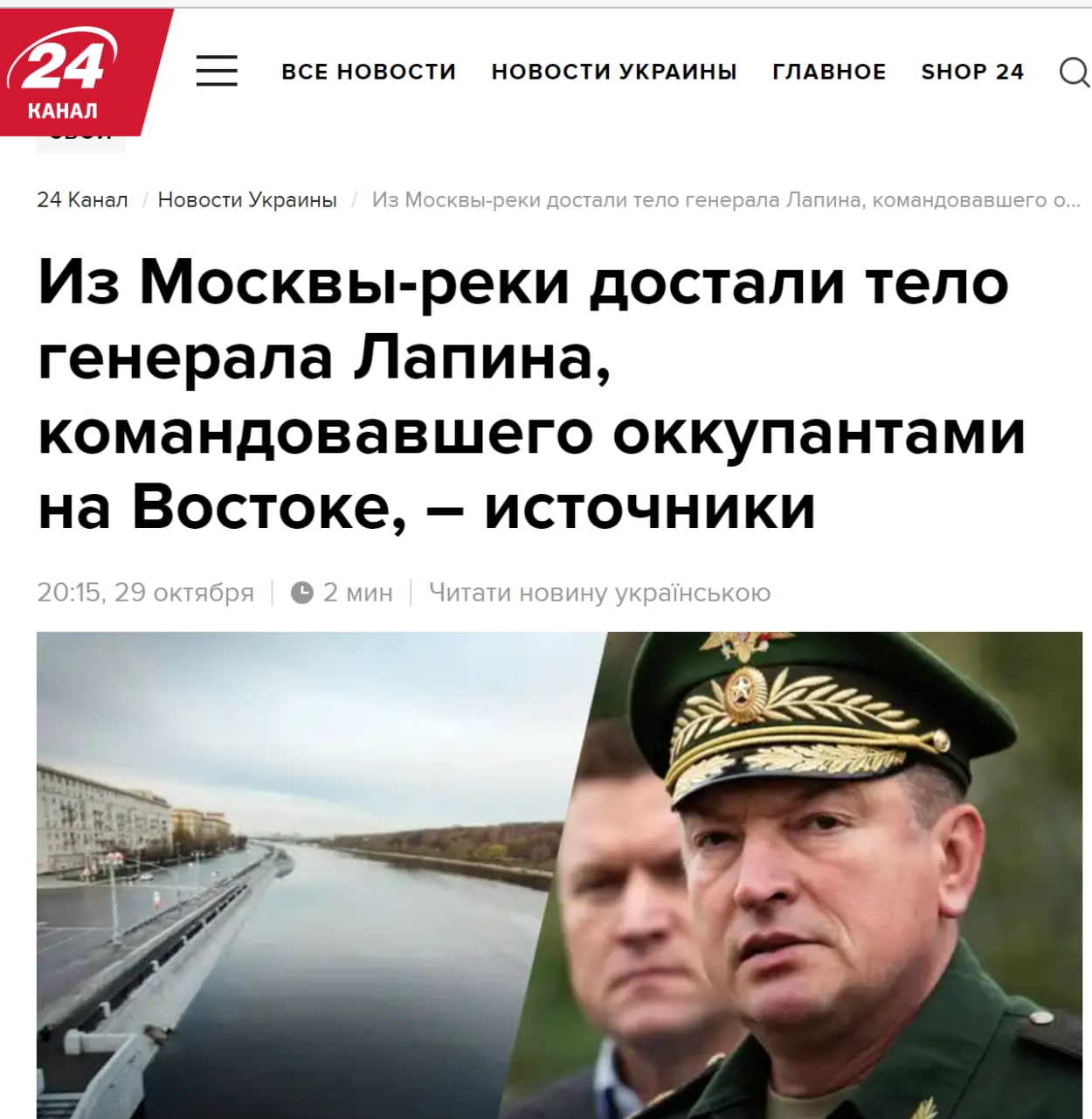 О том, что "Лапина нашли в Москве-реке", со ссылкой на источники в спецслужбах сообщил "24 канал". А затем перепостили несколько крупных украинских телеграм-каналов с аудиторией в несколько миллионов человек.