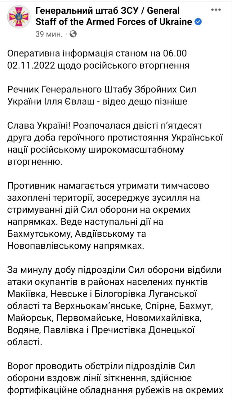 В среду, 2 ноября, в Украине идет уже 252-й день войны с РФ.