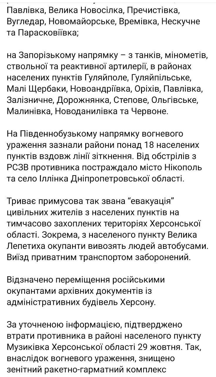 4. По информации Генштаба, с 31 октября началась эвакуация россиян и коллаборантов из Горностаевки Херсонской области.