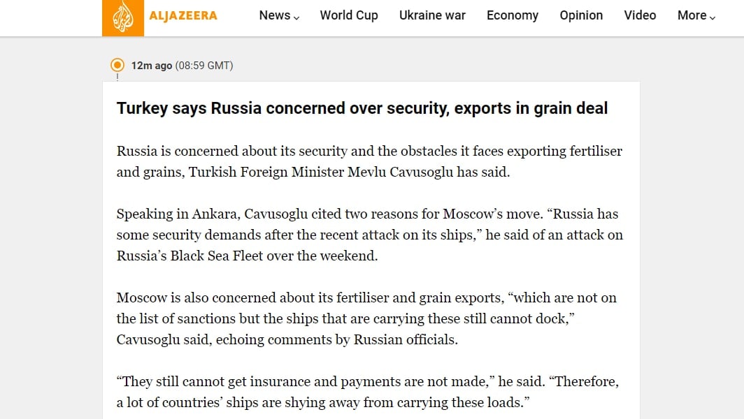 12.20 Два взаимоисключающих заявления о зерновом коридоре из Турции и России.
