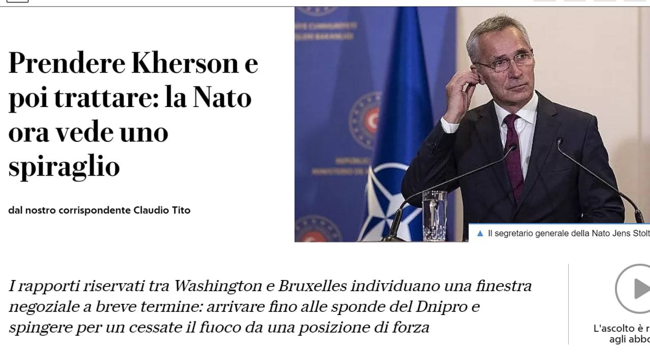 "Возьмем Херсон, а потом переговоры" - с таким заголовком вышла статья в издании La Repubblica, которое пишет о "проблеске надежды", который страны НАТО увидели по прекращению войны в Украине.