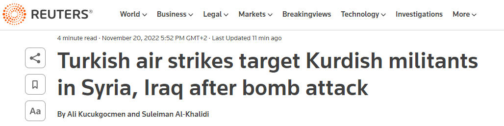 Удары Турции начались после того, как в Стамбуле произошел ряд взрывов, которые власти страны квалифицировали как курдские теракты.