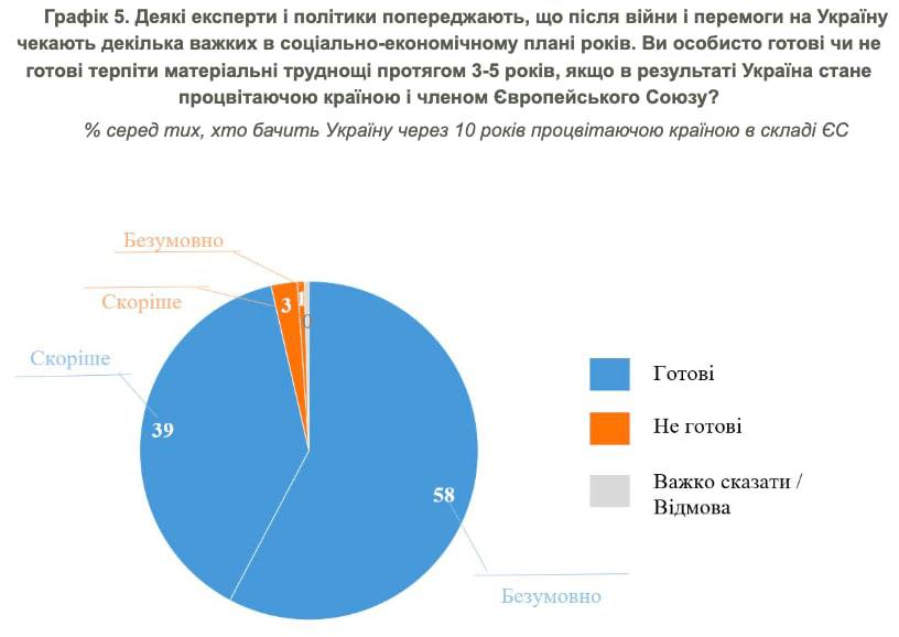 Однако в нем ничего не было про свет и тепло, а речь шла о готовности терпеть проблемы после войны. Формулировка дословно звучала так: «некоторые эксперты и политики предупреждают, что после войны и победы Украины ждут несколько тяжелых в социально-экономическом плане лет. Вы лично готовы или не готовы испытывать материальные трудности в течение 3-5 лет, если в результате Украина станет преуспевающей страной и членом Европейского Союза?».