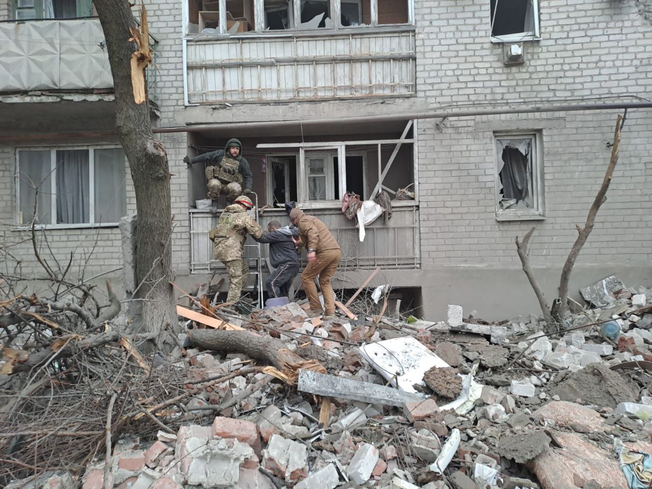 Три человека ранены. Разрушена многоэтажка и склад, сообщил губернатор Павел Кириленко.