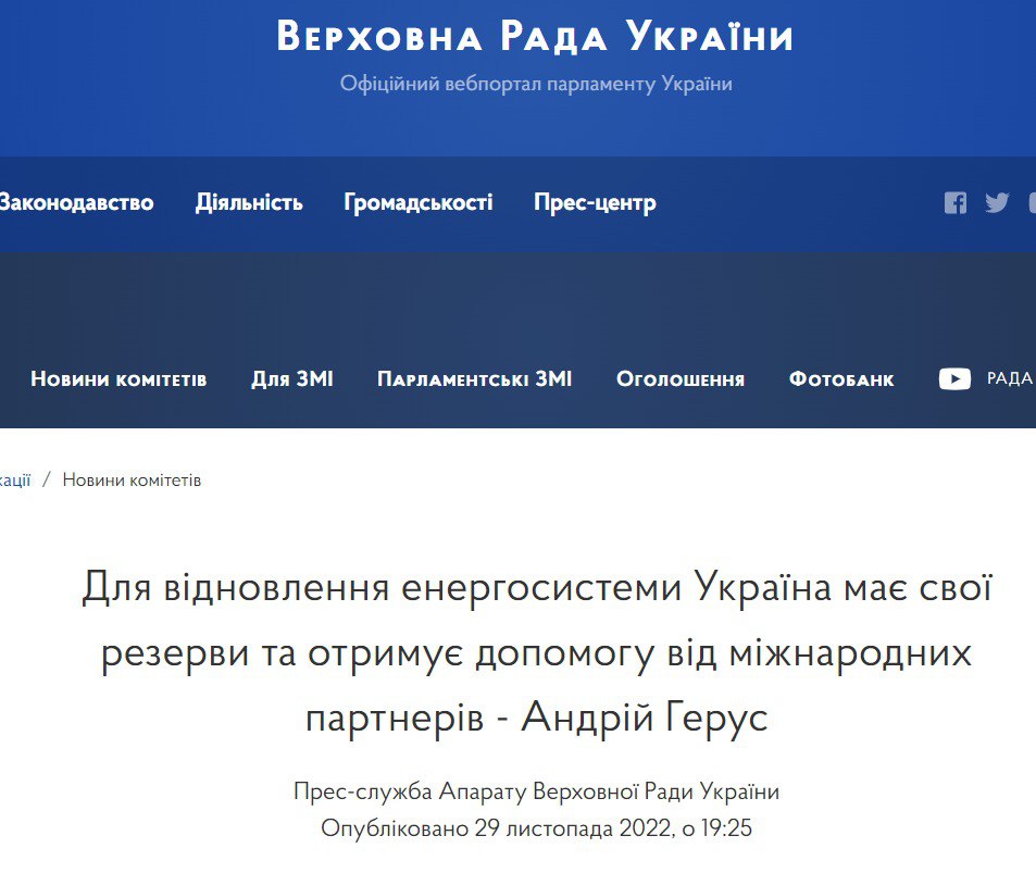 - Рассказал о заседании по вопросу защиты энергетики и связи. Сегодня вечером по стране отключены 6 млн абонентов. Ситуация тяжелее всего в Киеве, Киевской, Одесской, Винницкой, Львовской, Хмельницкой и Черкасской областях.