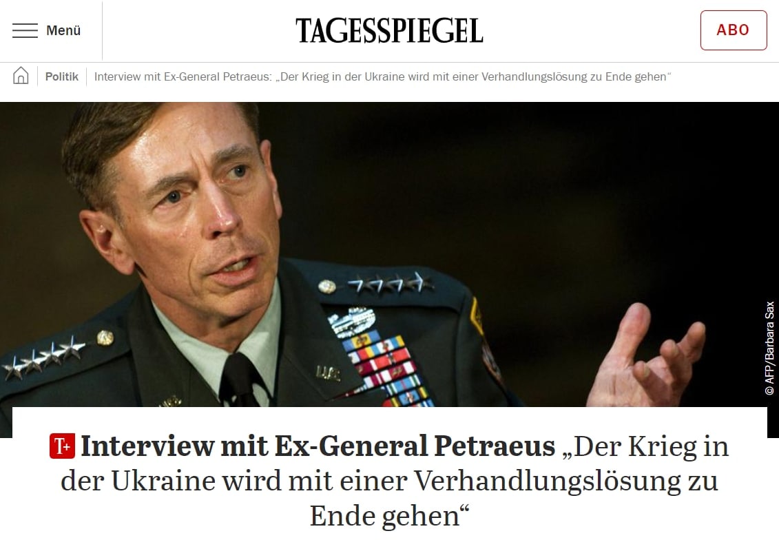 09:32 Война в Украине закончится переговорами, но Зеленский и Путин к ним не готовы сейчас, заявил экс-глава ЦРУ генерал Дэвид Петреус в интервью немецкой газете Tagesspiegel.