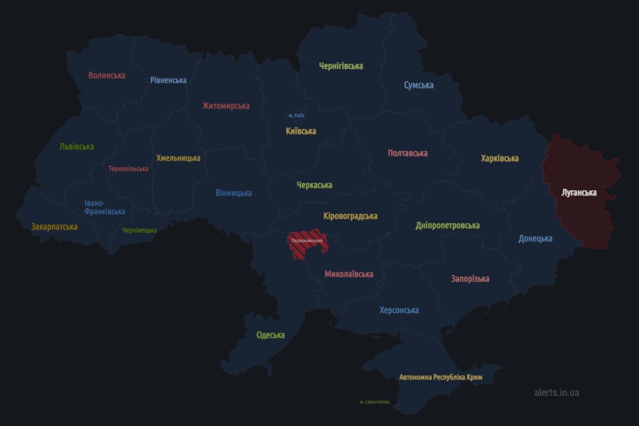 14.30 Воздушная тревога во всех областях кроме Крыма.