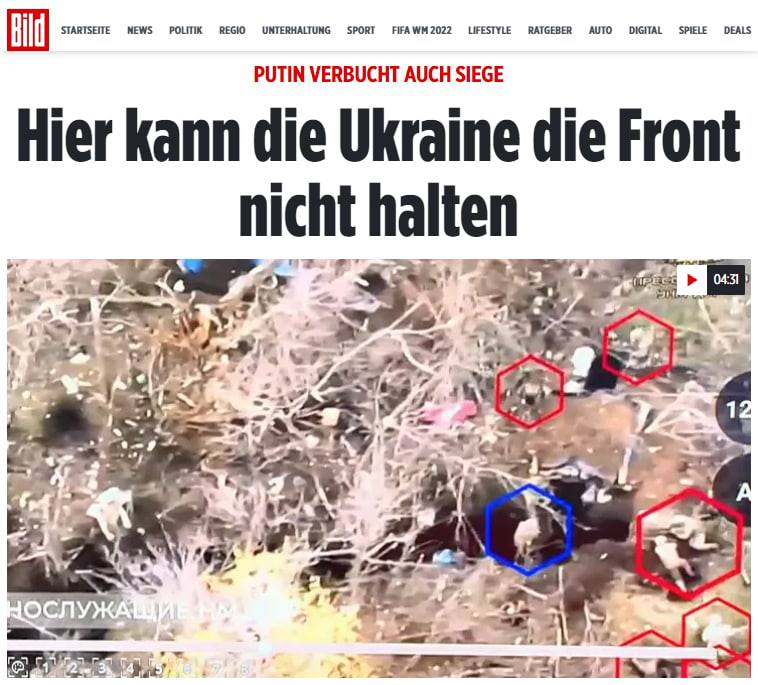 Немецкое издание Bild, комментируя ситуацию под Бахмутом, выпустило материал под заголовком "У Путина тоже есть победы. Здесь Украина не может удерживать фронт".
