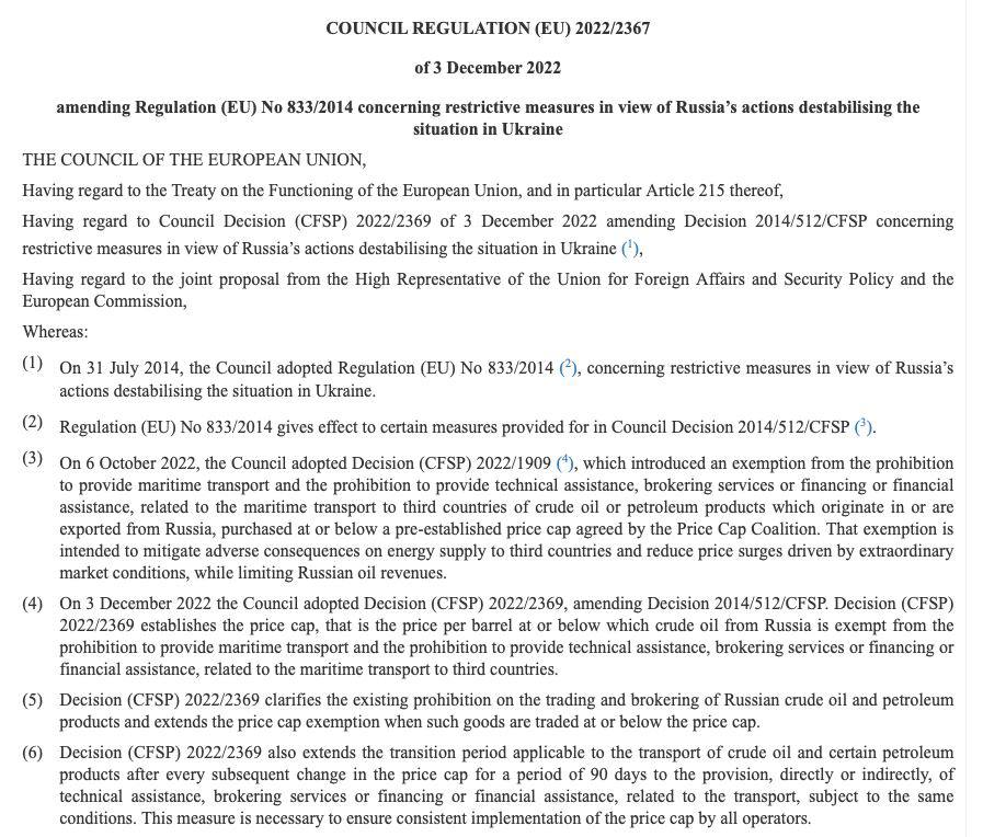 При этом для нефти, которая поставляется по трубопроводу "Дружба" через Украины в Венгрию и другие страны Восточной Европы нет ни потолка, ни запрета.