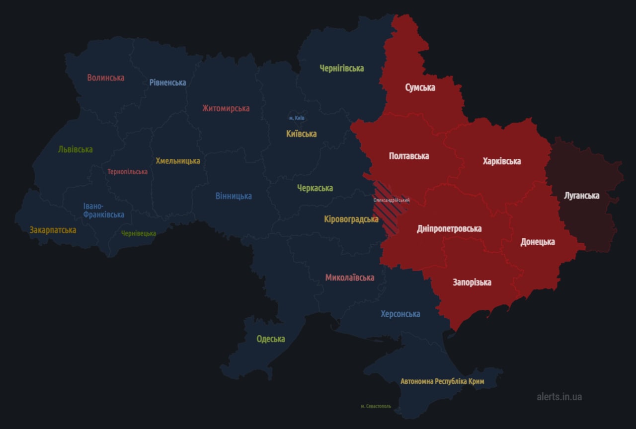 22:04 Воздушная тревога во всех восточных областях.