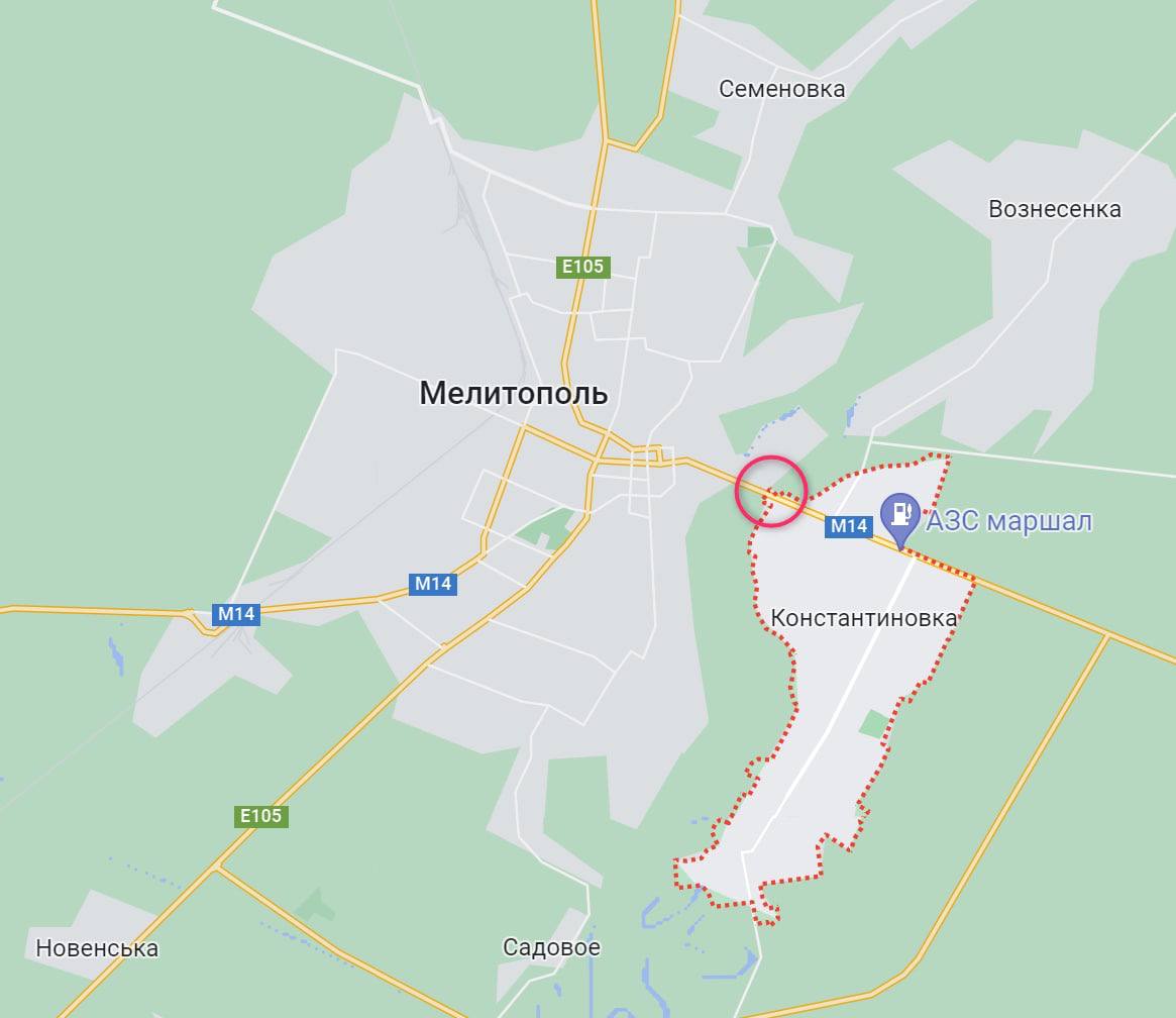 Взорванный мост расположен между Мелитополем и селом Константиновка, которую можно объехать по объездной. Именно по ней шел и идет основной поток грузов.