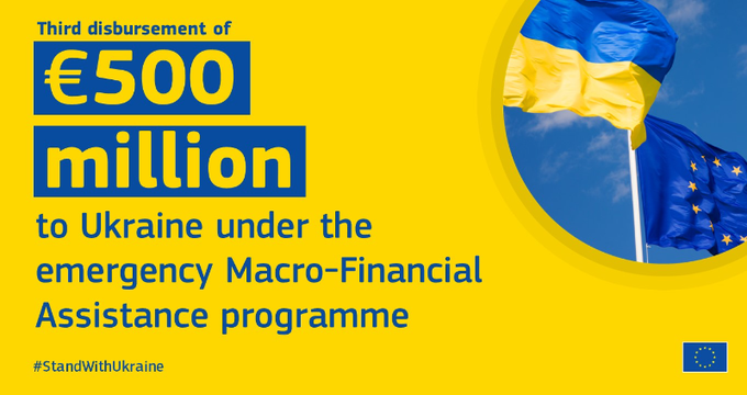 "С учетом сегодняшней выплаты общая сумма макрофинансовой помощи, выплаченной Украине с начала войны с Россией, достигла 7,2 млрд евро" - говорится на сайте Еврокомиссии.