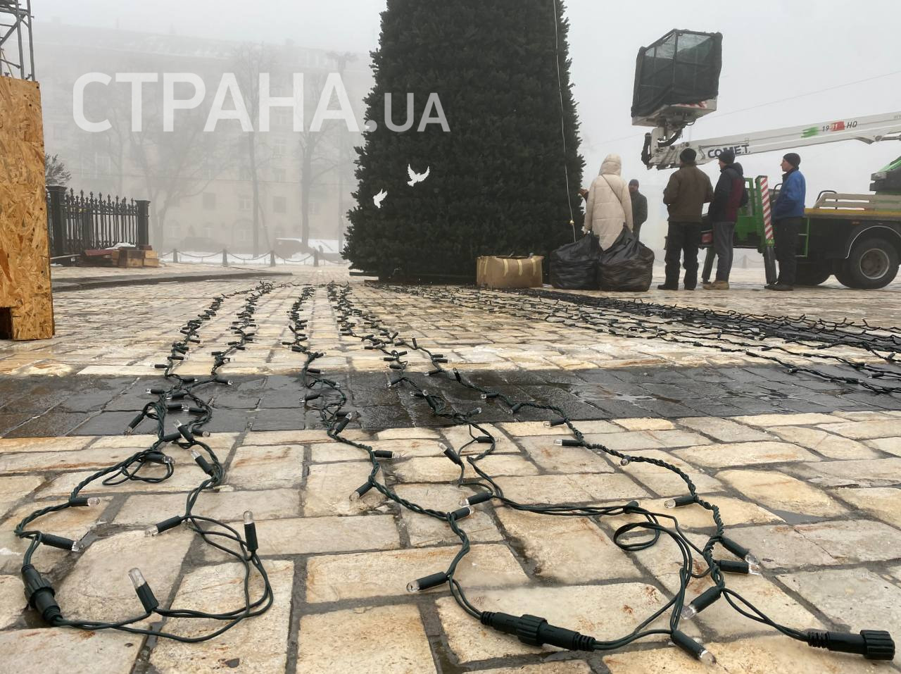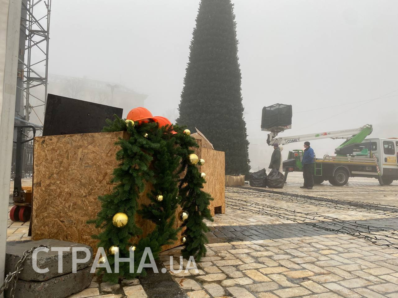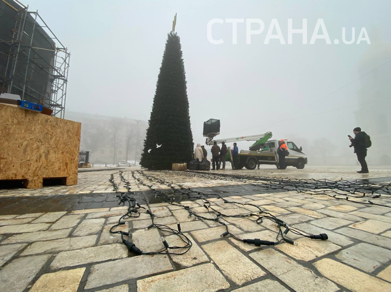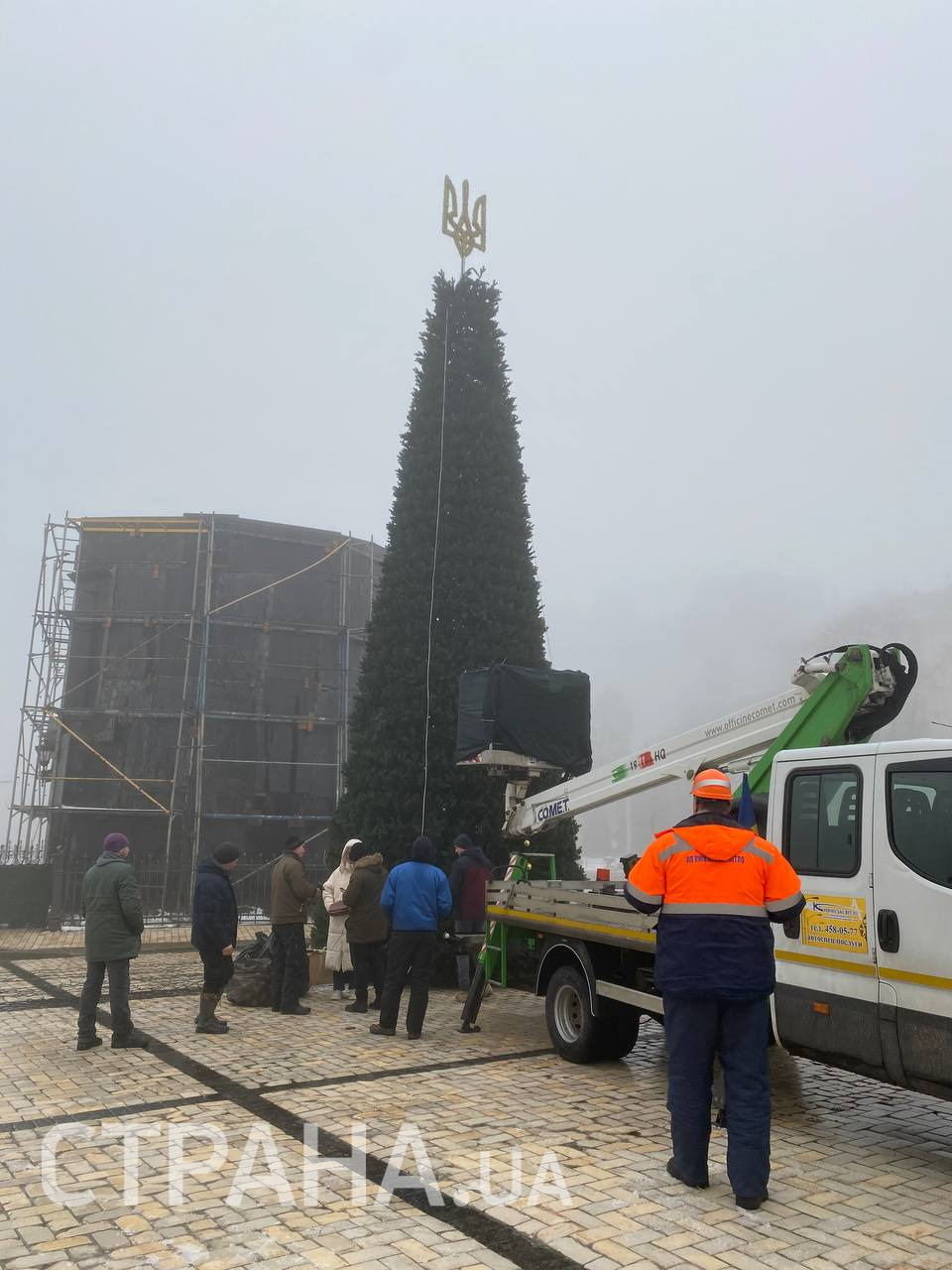15:15 Еще фото монтажа новогодней елки в Киеве.