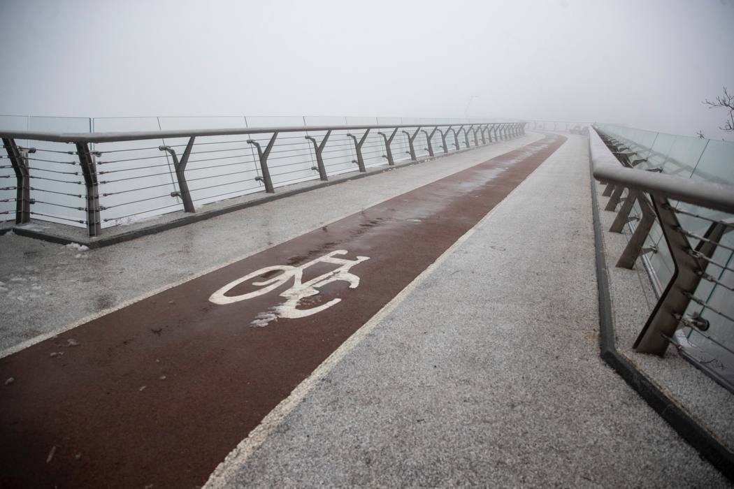 По его словам, были заменены все 18 поврежденных стеклопакетов и 143 перильных стекла. Кроме того, восстановили перила и тросы, натянутые вдоль моста.