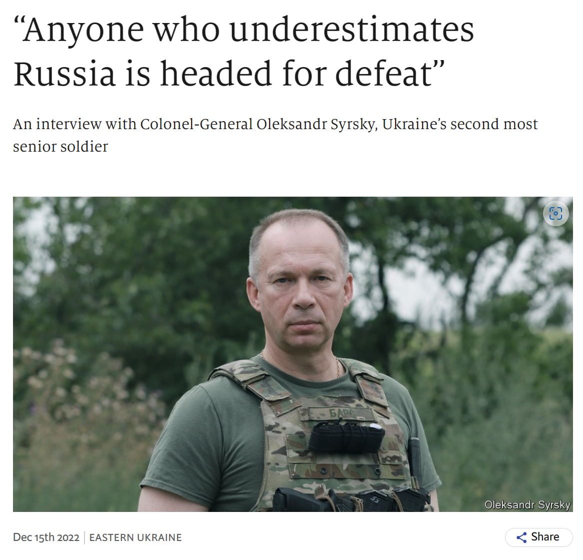 10:05 Кроме главкома ВСУ Залужного свое интервью журналу The Economist дал глава Сухопутных войск Александр Сырский.