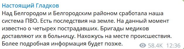 18:58 В результаты сегодняшних взрывов в Белгороде пострадали около 60 квартир, два частных дома и 32 автомобиля, сообщил и.о. мэра города Валентин Демидов.
