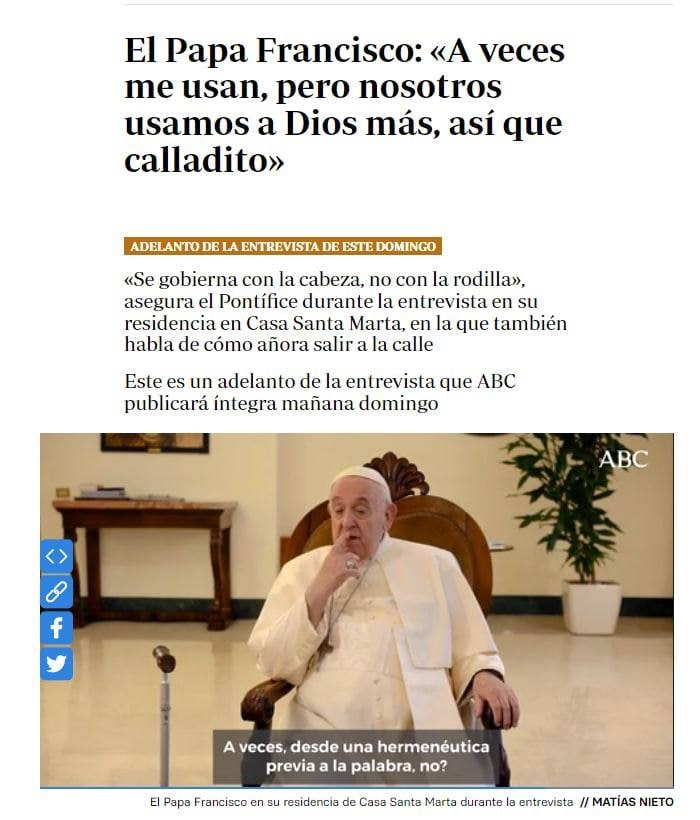 11:00 И еще одно заявление от папы римского Франциска из интервью испанскому изданию АВС.