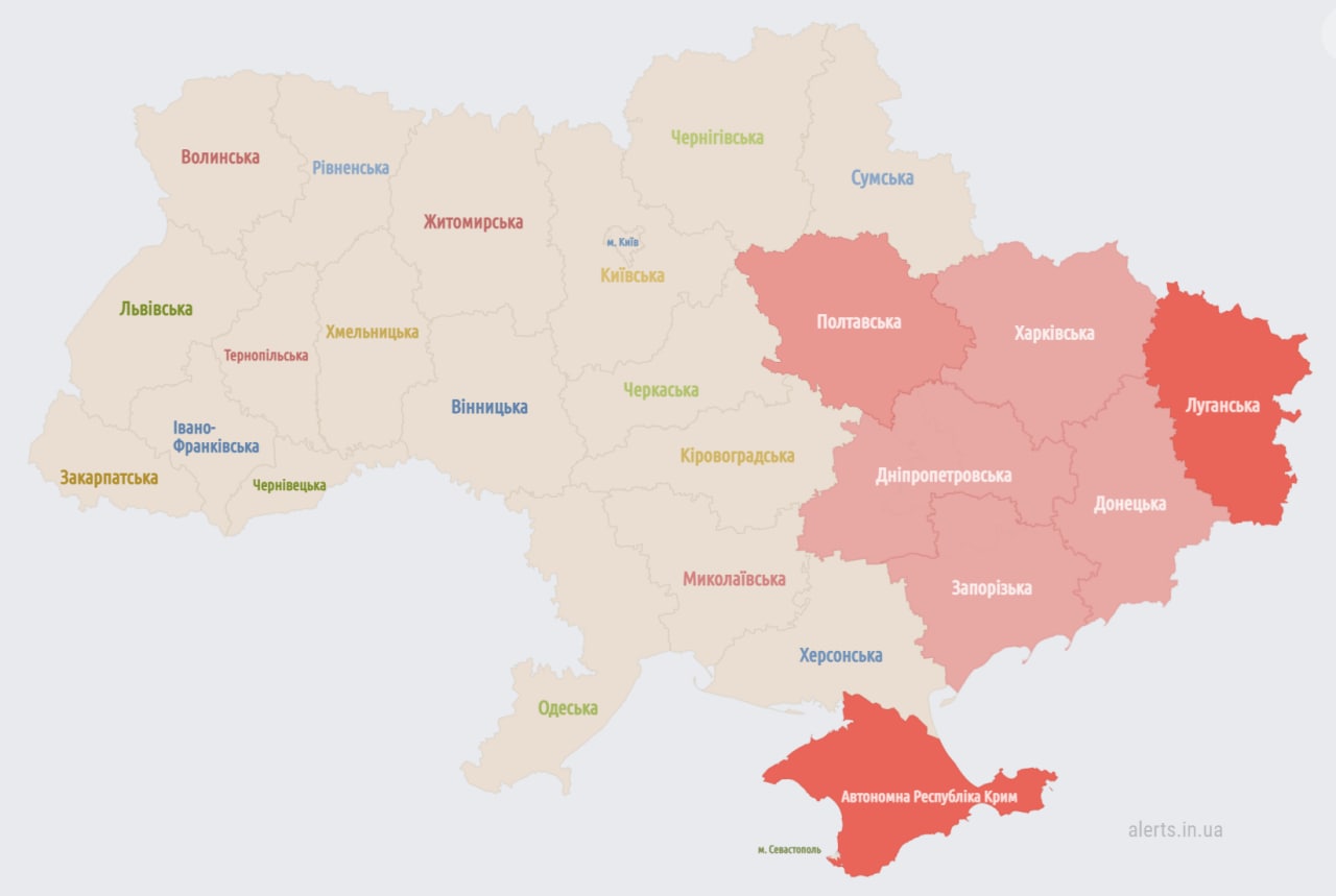 22.10 Воздушная тревога в восточных и части южных областей.