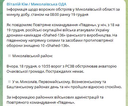 08.25 На юге Украины сегодня ночью уничтожили 10 дронов-камикадзе иранского производства.