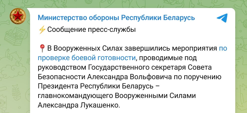 Минобороны Беларуси заявило о завершении проверки боеготовности своих войск