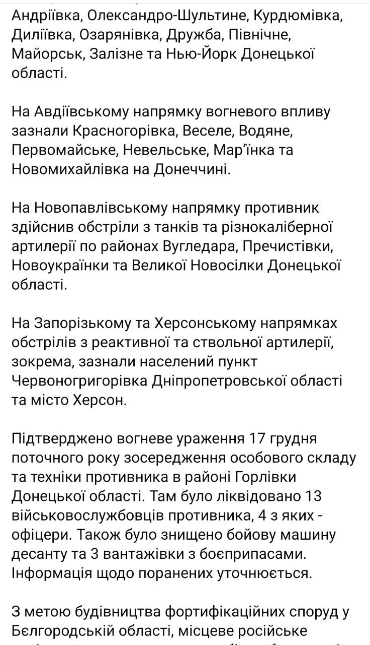07:25 Сводка украинского Генштаба на утро 22 декабря. Главное: