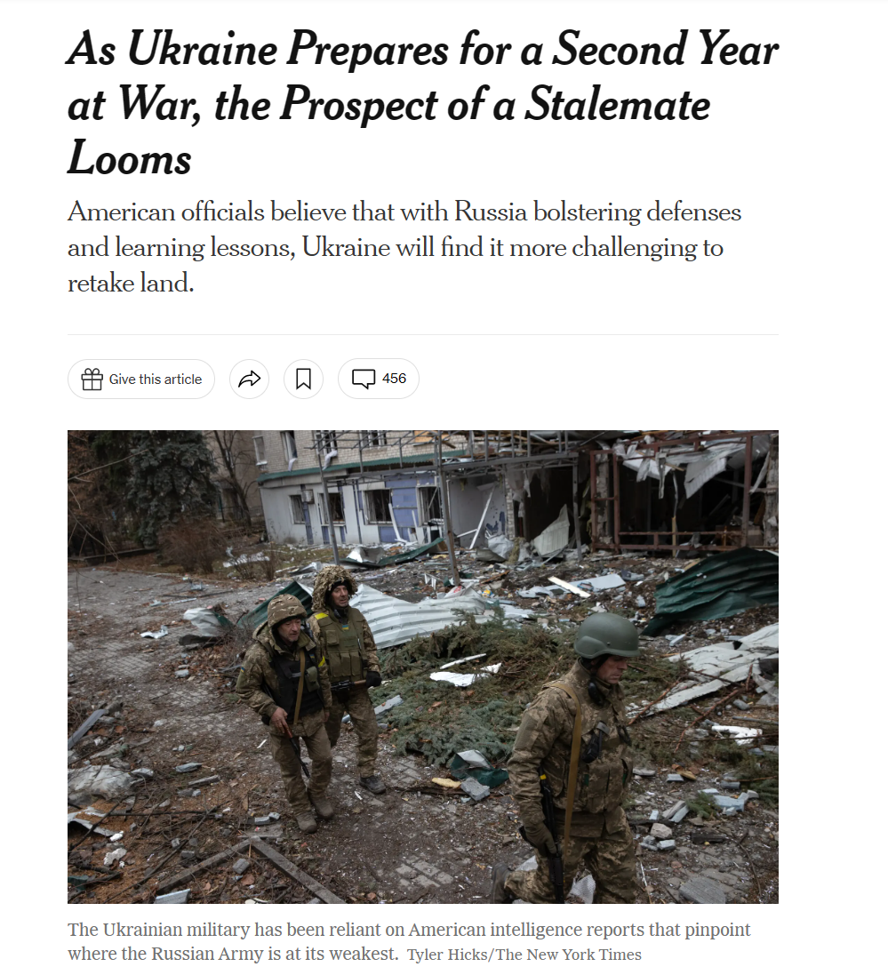 Поэтому ход войны, вероятно, изменится в ближайшие месяцы. И наиболее вероятный сценарий второго года конфликта - патовая ситуация, в которой ни одна армия не сможет захватить много территории.