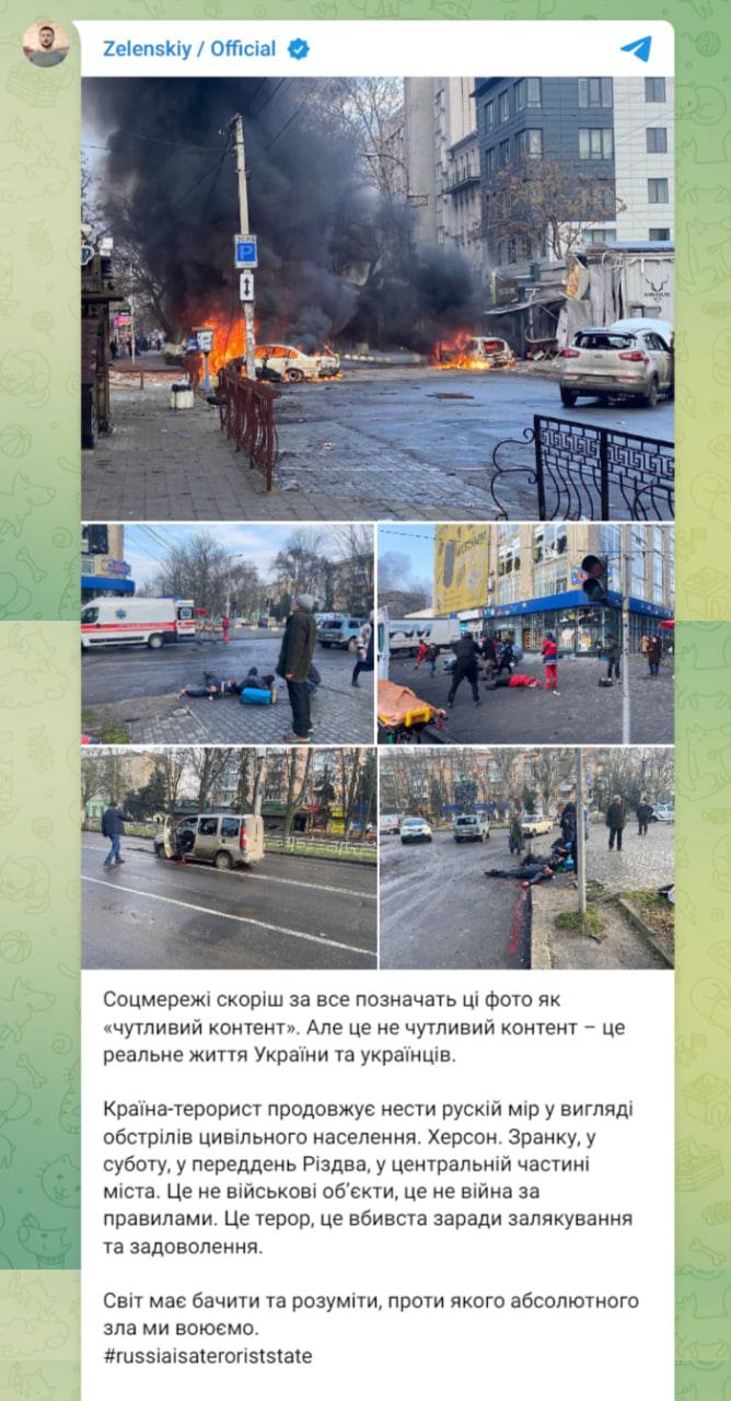 Президент Украины Владимир Зеленский прокомментировал сегодняшний обстрел Херсона:
