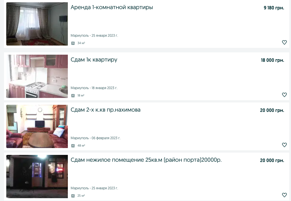 Из-за притока людей и дефицита целого жилья в Мариуполе сильно выросла цена на аренду. В среднем однокомнатные квартиры сдают на сайте ОЛХ в районе 10-15 тысяч гривен. Чем больше коммуникаций - тем выше цена. Снять двухкомнатную - уже 20-30 тыс. гривен (в рублевом эквиваленте - гривна в городе не ходит).