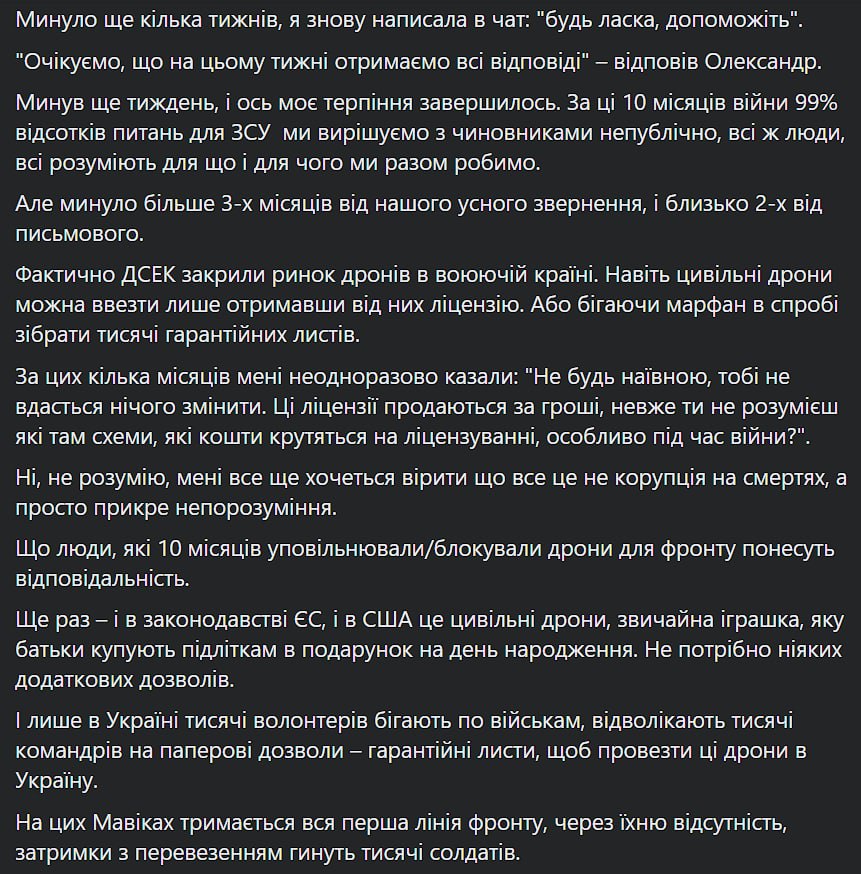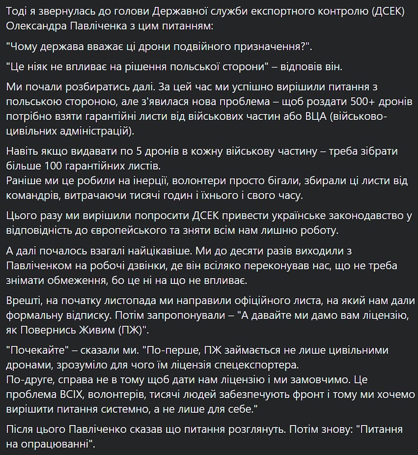 У волонтеров было два пути - собирать по воинским частям "гарантийные письма", либо обратиться в Государственную службу экспортного контроля, чтобы дроны перестали считаться в Украине средством "двойного назначения".