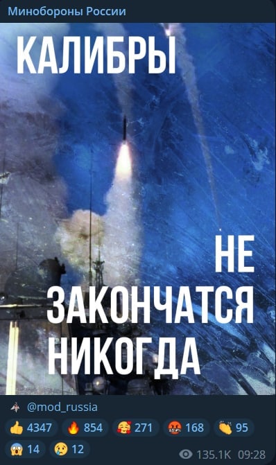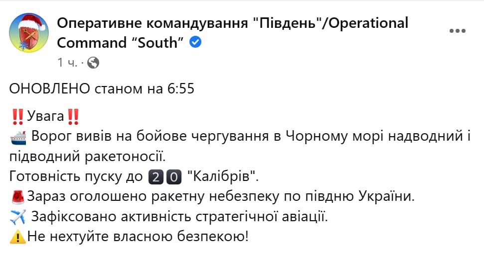 07:36 В небе 13 российских стратегических самолетов "Ту", в море - два носителя "Калибров", судя по короткому посту губернатора Николаевской области Кима.