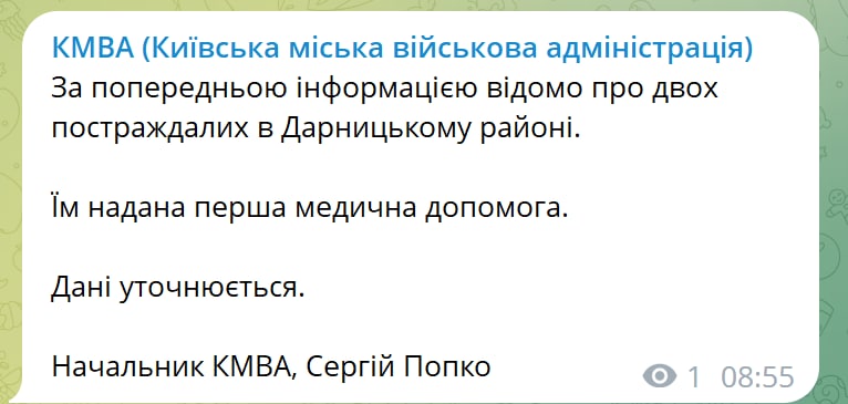 09:56 Предварительно двое пострадавших в Дарницком районе Киева, где обломки ракеты упали на частные дома.