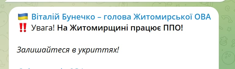 10:01 Снова взрывы и работа ПВО в Житомирской области.