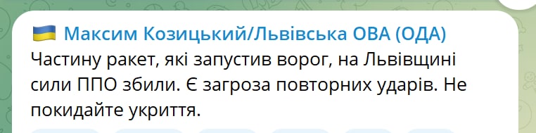 Напомним, губернаторы сообщили о пуске ракет по Украине этим утром.