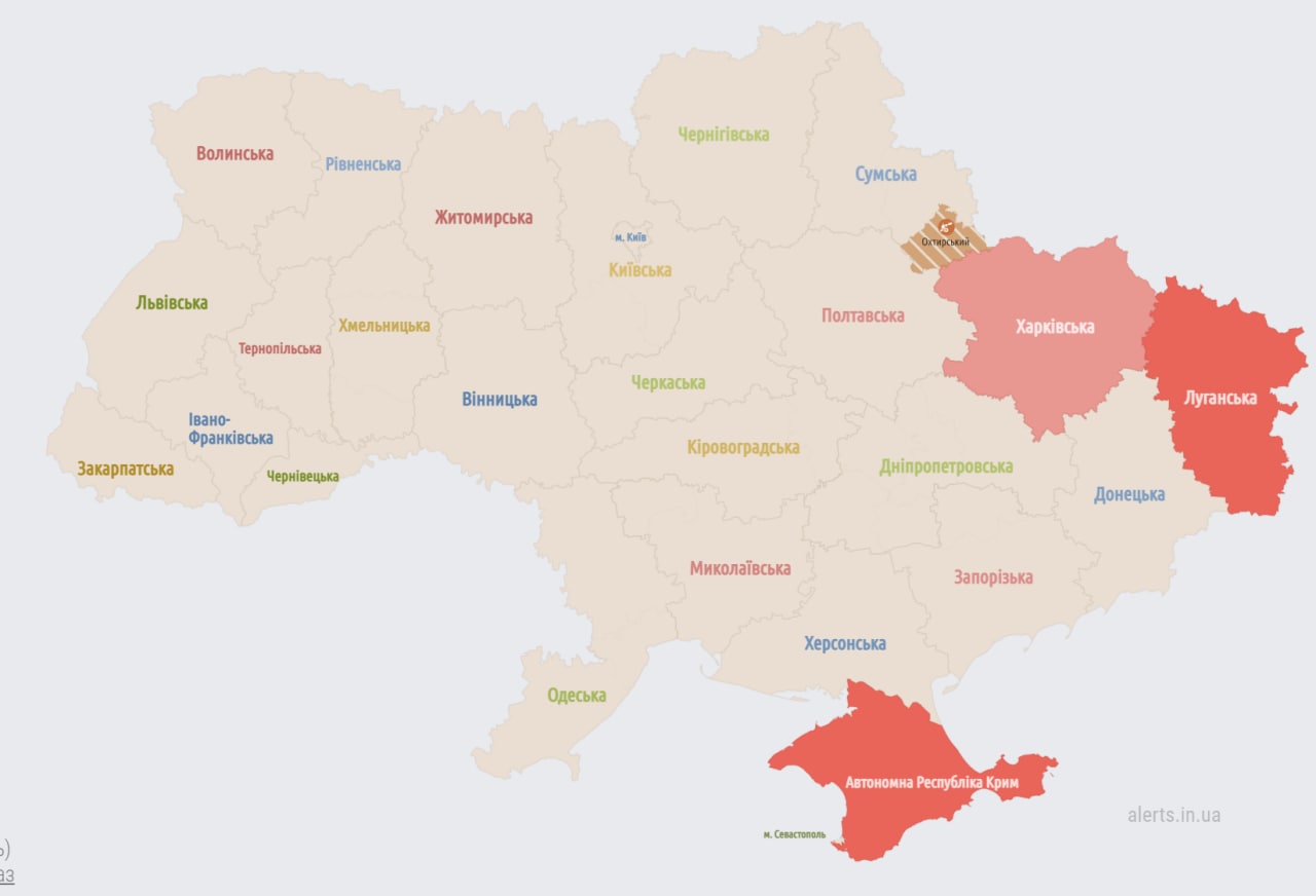 22.56 Воздушная тревога в Днепропетровской и Запорожской областях.