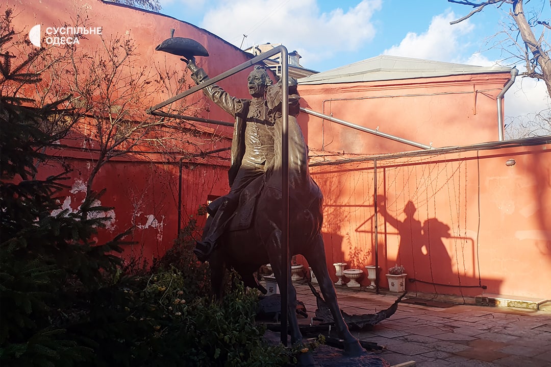 07:40 Фото демонтированного памятника Екатерине Второй и другим основателям Одессы.