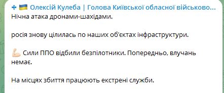 Ночью Киевскую область атаковали дроны, которые целились по инфраструктуре