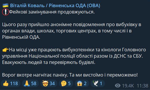 Там проверяют на наличие опасных предметов школы, торговые центры и Ровенскую Облгосадминистрацию.