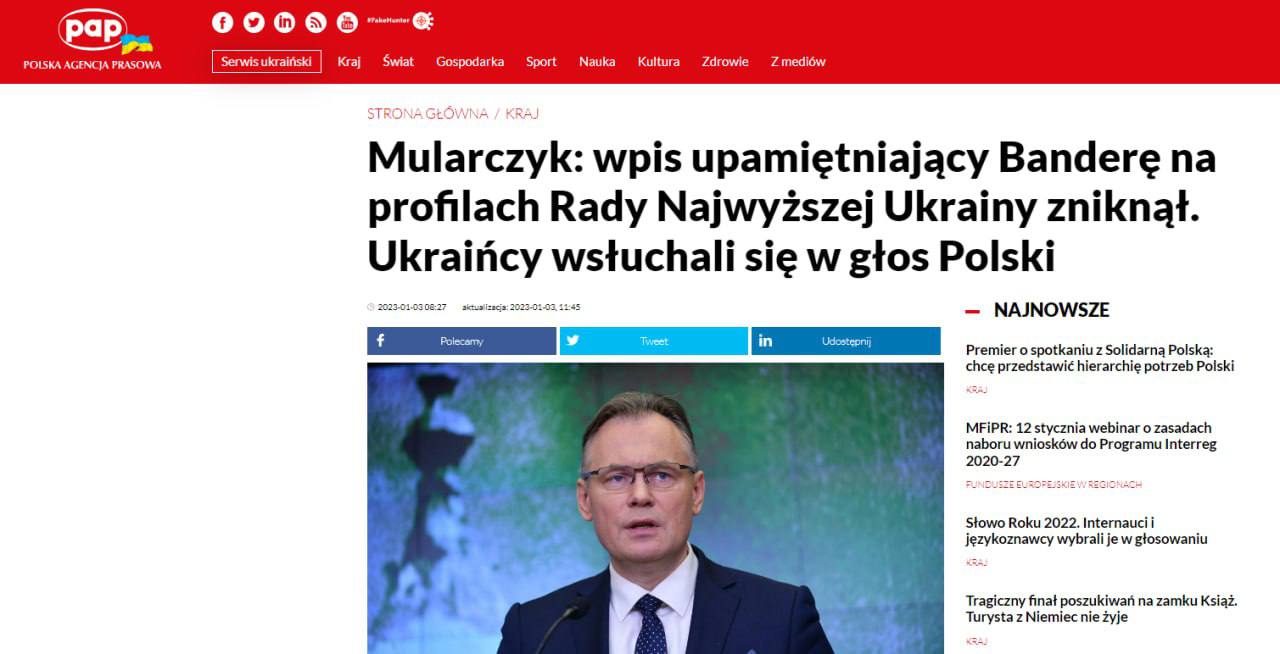 Этот пост был опубликован 1 января, но исчез после разговора премьер-министров Украины и Польши.