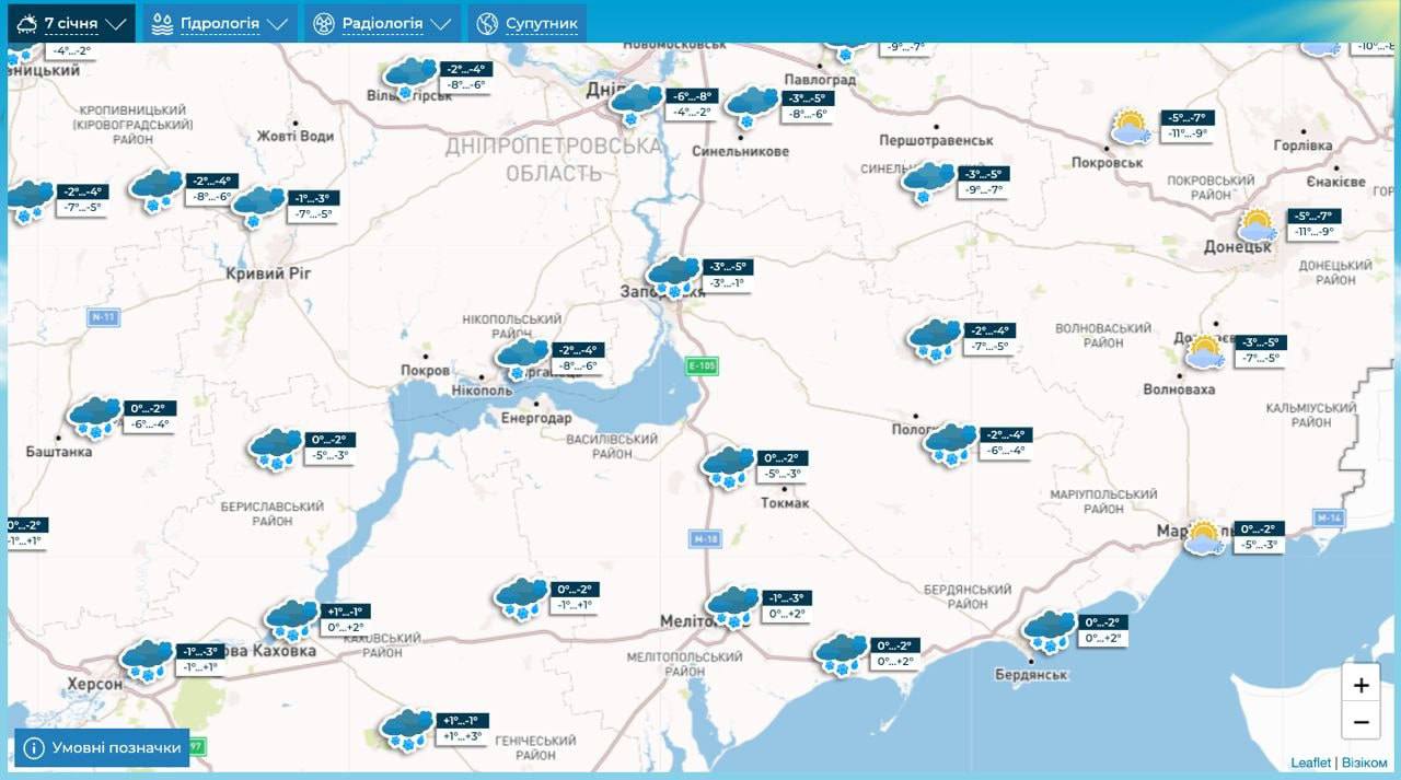 В Гуляйполе, где находятся передовые позиции ВСУ в Запорожской области, на Рождество температура с 5-7 градусов тепла упадет до 5-7 градусов мороза и начнется снегопад.