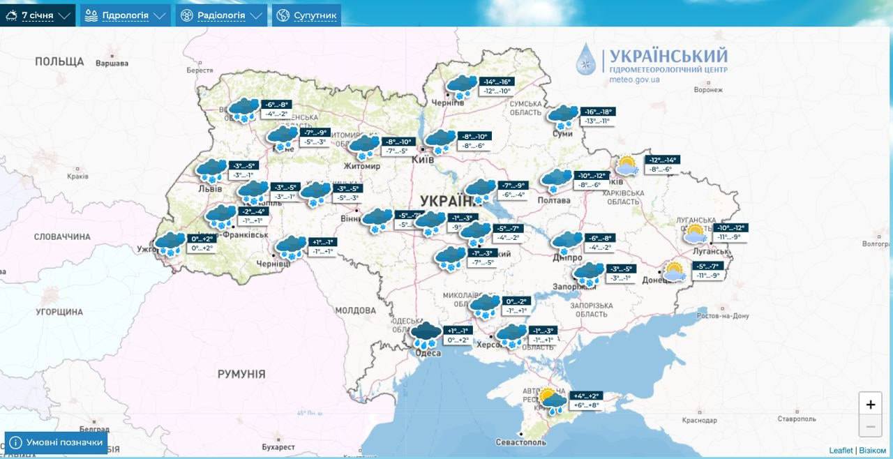 Самые резкие перепады температуры ожидаются на севере - в Черниговской и Сумской областях. Там уже 6 января температура с 3-5 градусов тепла упадет до 3-7 градусов мороза, а 7 января и вовсе достигнет 10-13 градусов ниже нуля и выпадет снег.