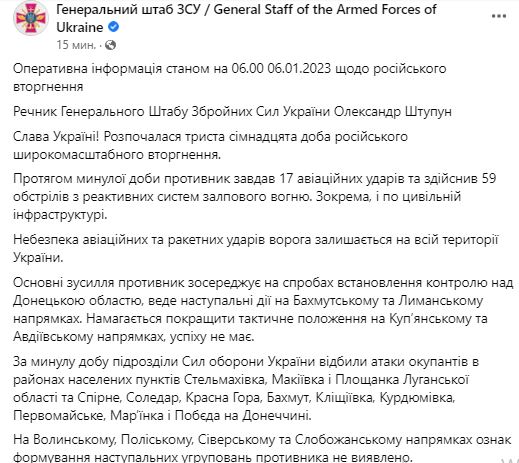 В пятницу, 6 января, в Украине идет уже 317-й день войны с РФ.