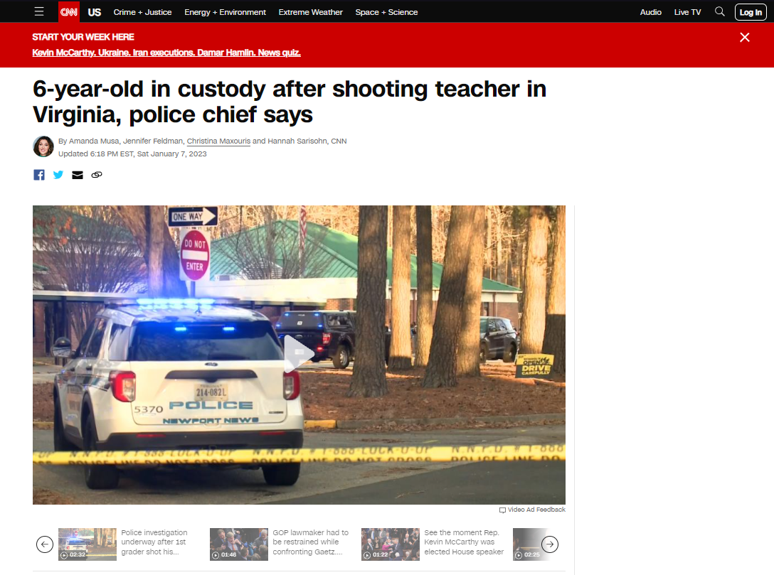 В США шестилетний ученик первого класса выстрелил в учительницу начальной школы города Ньюпорт-Ньюс в штате Вирджиния.