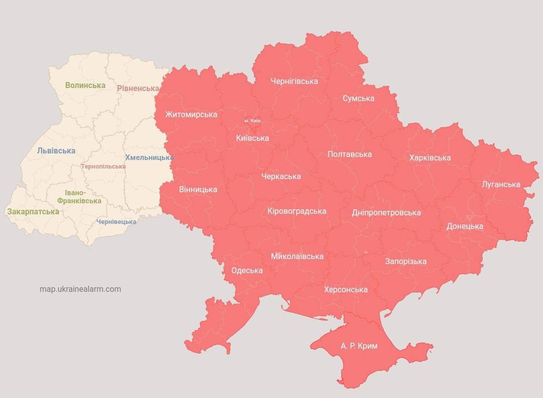 18:12 Карта воздушных тревог на данный момент.