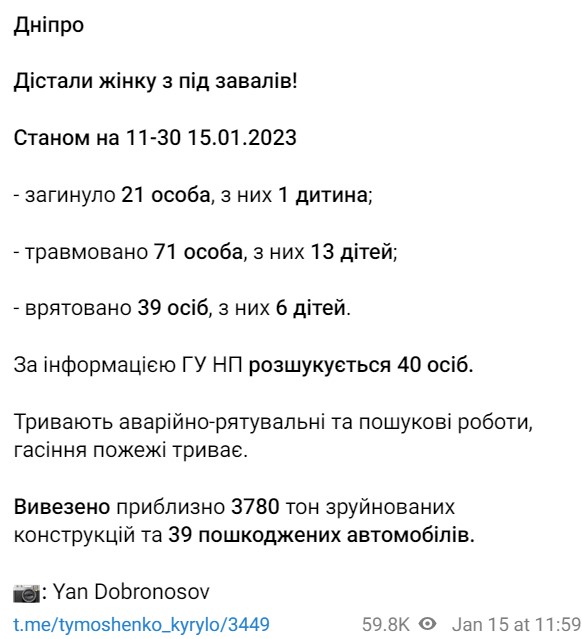 По его данным, сейчас уже известно о 21 погибшем. Из них один ребёнок.