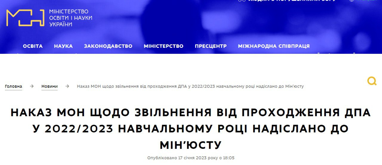 Отмечается, что приказ "Об освобождении от прохождения государственной итоговой аттестации учащихся, завершающих получение начального и базового общего среднего образования, в 2022/2023 учебном году", уже направлен в Министерство юстиции.