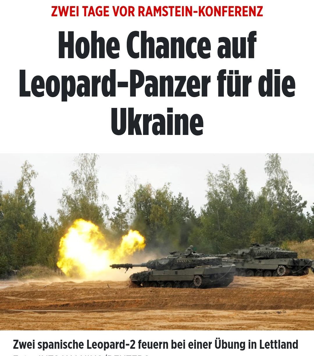 08:10 Немецкая газета Bild выпустила сразу две публикации о том, готова ли Германия поставлять танки "Леопард" Украине.